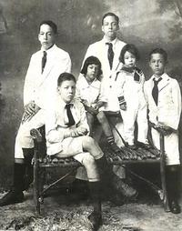 Op de foto staan van links naar rechts: Joop, Lucky(vermoord tijdens de Japanse bezetting) Willy, Hannie, Piet, Arie (vermoord tijdens de bersiap). Hun vader ging in de suiker en zijn broer, in het binnenlands bestuur, de laatste is gepensioneerd als assistent-resident van Bali.