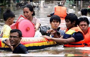 .vluchten-jakarta_402492hNaar schatting honderdduizend mensen zijn in Indonesi op de vlucht geslagen voor overstromingen die volgden op aanhoudende zware regenval. Vooral delen van de hoofdstad Jakarta zijn getroffen, meldde het staatspersbureau Antara zaterdag.  Artikel in de Gelderlander    NOS 4 febr: 20 verdronken, 200.000 dakloos