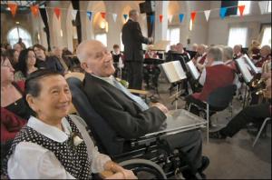 Maandag 26 februari 2007 – DINTELOORD/ROOSENDAAL – Overdonderd en tot tranen toe geroerd waren Jan de Bruijn (87) en Greet Portiers (83) gistermorgen bij het optreden van Ouderenharmonie Harvano uit Oudenbosch. BN de Stem