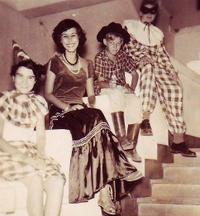 Deze foto is uit 1954, genomen op de trap van de Christelijke HBS te Jakarta. We hadden een schoolfeest. Bal costum.