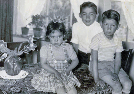 Nanette linksonder, daarnaast haar latere man met broertje en zus