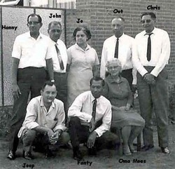 Oma Moes en haar kinderen Tielman . Zij was Johanna Blondé, gehuwd met George Tielman. De foto onder is oma Moes met haar moeder Minah, gehuwd met Lambertus Blondé . De man is onbekend . Zie dit archieftopic
