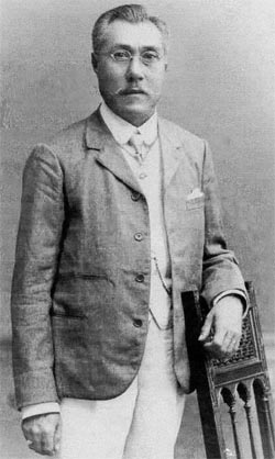 De man met de stok is Bernardus George Vodegel, geboren in 1882, zoon van Willem Frederik Vodegel, geboren in 1855…. de man bij de stoel.