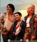 Foto van l.n.r.: Esther Captain, Paula Gomes en staatssecretaris Jet Bussemaker bij de presentatie van het boek ‘de smaak van verlangen’ .