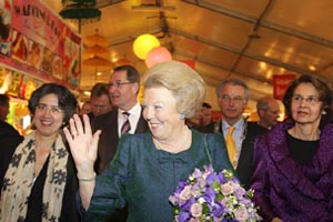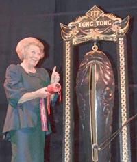 Koningin Beatrix heeft woensdag met een slag op een grote tongtong, de vijftigste editie van de Pasar Malam Besar in Den Haag geopend. Een tongtong is een hangende, uitgeholde boomstam, die een doffe klank voortbrengt als er op wordt geslagen.