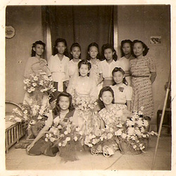 Dit is een serie foto’s rond Victoria Beatrice Evertsen Geboren 15-11- 1925 Pekalongan, gestorven 15-11-1987 Victorville, CA USA.  Gewoond Bengawanstraat 14 in Soerabaja. Zij is de bruid  in het midden op 9 december 1947. Wie herkent op deze en andere foto’s de mensen ? Graag wilt de inzender uw opmerkingen. It’s all about roots, isn’t it ?