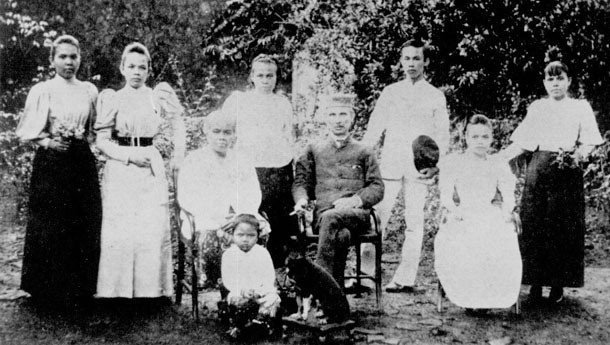 zittend v.l.n.r: de ouders, moeder Poeloem, vader Willem Karel Frederik Günther en oudste dochter; Amelia Adriana Magdalena Günther niet gehuwd.