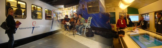 Zondag 25 april stond de Vrijheidstrein op spoor 7 van Den Haag CS. Het Nederlands Instituut voor Militaire Historie (NIMH), museum Bronbeek, het Museon en het Indisch Herinneringscentrum Bronbeek namen deel aan de actie “Niet Weggooien” in de Vrijheidstrein van het Nationaal Comit 4 & 5 mei. De Vrijheidstrein rijdt van 31 mrt tot 5 mei door heel Nederland, men kan exposities en films bekijken, debatteren, er wordt op verschillende manieren gekeken naar “vrijheid”. Afgelopen zondag was er speciale aandacht voor de oorlog in voormalig Nederlands Indi. Op perron 7 stonden o.a. een opstelling van diverse kamptekeningen, en informatiestands van Pelita en Bronbeek. In de trein hebben wij de lezing “Achter de Kawat” bijgewoond over Charles Burki, Prikkelpraat; theatervoordracht door acteur Herman Frank, en het debat “Bevrijding Hoezo?” olv Wim Manuhutu. ( het programma.) Filmpje