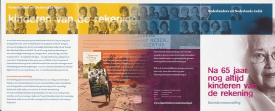 De Expositie  “Kinderen van de rekening” is te zien in het Atrium-stadhuis Den Haag, tot 28 augustus. Op de Herdenkingsdag, zondag 15 aug. is er een speciale openstelling van 14u tot 18u. Tevens is er een uitgebreide website aan gewijd zie –> 65jaarkinderenvanderekening.