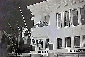 We use to live in Bandung in 1956. My mother was director of the well known fashion store called Keller and Java Mode Magazijn on Jalan Braga. We lived above the store. On the picture was our little kumpulan on the balcony. Remember Maison Bogarijen? They were next door and made the most delicious Dutch breads, pastries and ice cream . The buildings are still there, but they are not taken care of. My mother’s maiden name is Ruth d’Abo (maiden name)(foto) and she designed a lot of the dresses herself and did the window decorating of those stores. At that time this was the best fashion store where you could buy the latest fashion clothes and jewelry in Bandung. Some of the customers/friends who would come and buy clothes were: fashion model Joyce Mouthaan, Nell Kawilarang and first wife of president Sukarno. My sisters and I were teenagers at that time and were more interested in going to the Dago Waterfall and Lembang swimming pool than being around this clothing business.