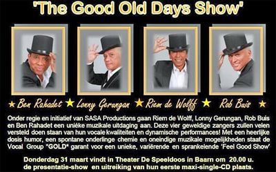 Een verslag van Tjampoer.nl : Theater presentatie vocal Group Gold in de Speeldoos in Baarn. Na maandenlang achter de schermen hard gewerkt te hebben was daar eindelijk de theaterpresentatie van Gold. De vuurdoop voor Lonny Gerungan, Ben Rahadet, Riem de Wolff en Rob Buis stond te gebeuren.