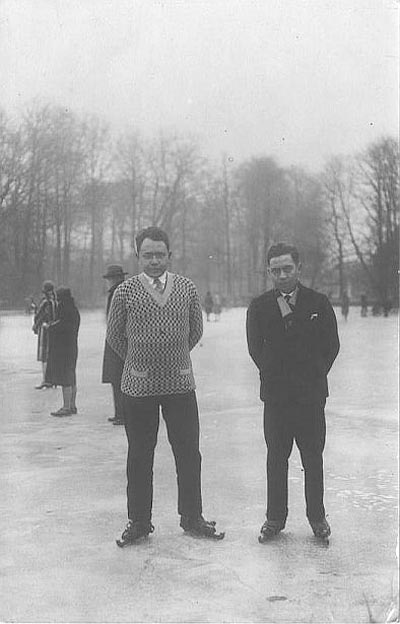 23. Wat super romantisch uw vader en oom daar staande op het ijs. Een foto die heimwee in je oproept. Want zij gingen weer terug naar Indi, verbleven maar tijdelijk in Nederland. Geen wonder dat zij het niet koud hadden!