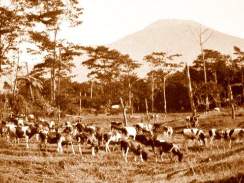Lang geleden (1934) was er een weide aan de helling van de Gunung Slamat met Fries stamboekvee. Klik op het plaatje