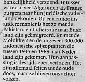 -beweren dat de integratie (hij zegt ‘aanpassing’) van zowel Indo’s enerzijds als Molukkers anderzijds ‘goed is verlopen’. Ik denk dat dit geen verdere toelichting behoeft.