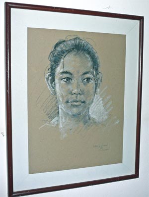 Citaat mail:laatst vond ik in mijn kleine collectie een bijzonder leuke houtskooltekening van Imam Subekti uit Jakarta. Bijgevoegd zal ik wat foto’s meezenden. De breedte bedraagt 29 cm en de hoogte 40 cm (passepartout).