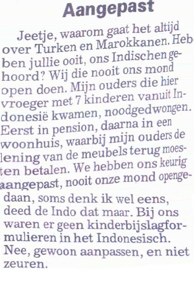 Mail 1: In Soerabaja werd toen helemaal niet gerampokt en gegijzeld. Van andere plaatsen weet ik niets af, ik was toen nog jong, en er waren geen kranten e.d. Wel hadden we al eerder een verlaten Nederlandse kazerne (in mijn school) leeggehaald, vooral blikconserven en water. Maar dat deden dus niet Indonesiërs, maar Nederlanders. Hierbij hulp gehad van enkele achtergebleven Nederlandse militairen die bezig waren militair materieel te vernietigen.