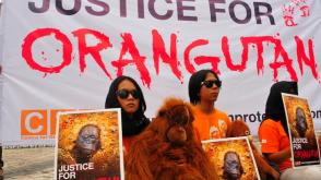 Op Borneo, waar de meeste mensapen leven, zijn in een jaar tijd 750 orang-oetans gedood, zeggen onderzoekers.