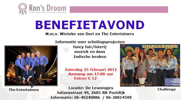 Voor u ligt Nieuwsbrief 8 die geheel gewijd is aan de benefietavond van Stichting Ron’s Droom die zal plaatsvinden op zaterdag 25 februari 2012 in De Leuningjes, Julianastraat 49, 2685 BB Poeldijk. De aanvang is 17.00 uur en de entree bedraagt 12 EURO.
