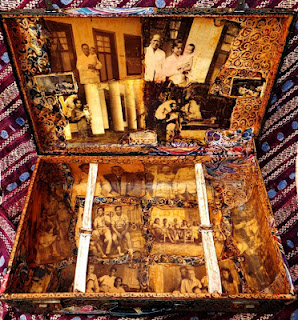 “Mijn ouders zijn in 1950 vanuit Nederlands-Indië naar Nederland gekomen. In huize De Braacken hebben ze elkaar ontmoet. De koffers die ze bij zich hadden tijdens hun reis, heb ik van zolder afgehaald. Ik heb ze bewerkt met antieke batikstoffen en vol geplakt met oude familiefoto’s. Hierdoor zijn de koffers nu een soort klankkast van herinneringen aan het leven van mijn familie in Nederlands-Indië.” artikel