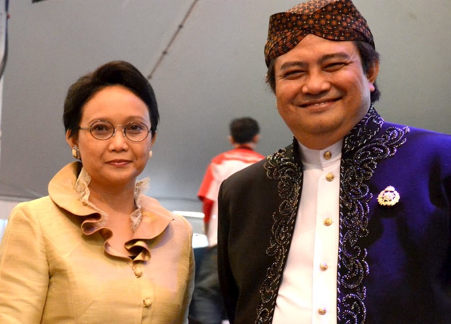 Voor de 3e maal wordt de Pasar Malam Indonesia gehouden op het Malieveld te Den Haag.   Donderdag 29 maart jl.  vond de feestelijke grand opening plaats in aanwezigheid van o.a de nieuwe Indonesische ambassadeur Retno Marsudi, Ben Knapen (staats. BZ) en tal van andere Nederlandse, Indonesische en  buitenlandse hoogwaardigheidsbekleders.   Foto: Ambassadeur Retno Marsudi en Umar Hadi (Deputy Chief of Mission)