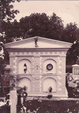 In een doos met foto’s van wijlen mijn vader vond ik bijgevoegde foto van wat naar ik aanneem een familiegraf is. Als ik de foto sterk vergroot, zie ik ernaast een grafmonument van Maria Antonetta Soesman, geboren Landegent (geb. 6-1-1887, overl. 9-11-1892). Zij was een zus van mijn overgrootmoeder, Johanna Catharina Landegent, die gehuwd was met Louis Joseph Jeanty. Herkent iemand het grote naamloze grafmonument en zo ja, waar heeft dat gestaan?