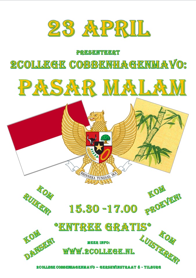 In samenwerking met de vakken gs, ak, ec, ne, lb en vz zal maandag 23 april op de mavo de eerste Mavo Pasar Malam gehouden worden.