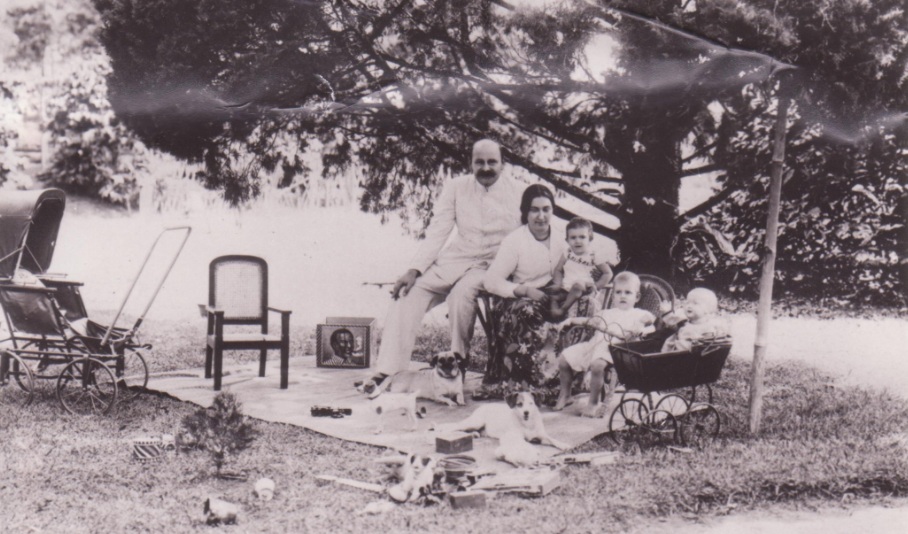Voor zover ik weet is de foto genomen op de thee onderneming Nadu Ardjo, ergens in de bergen nabij Malang. We zien mijn Opa Andre Willemse en Oma Amalia Willemse geboren Mendes da Costa. Op schoot bij zijn moeder zit mijn vader. Hij lijkt me hier een mannetje van misschien 3. Hij is geboren 23 januari 1916.Daar naast zit zijn jongste zus Tissie mijn tante. Dus ik schat de foto rond 1919.
