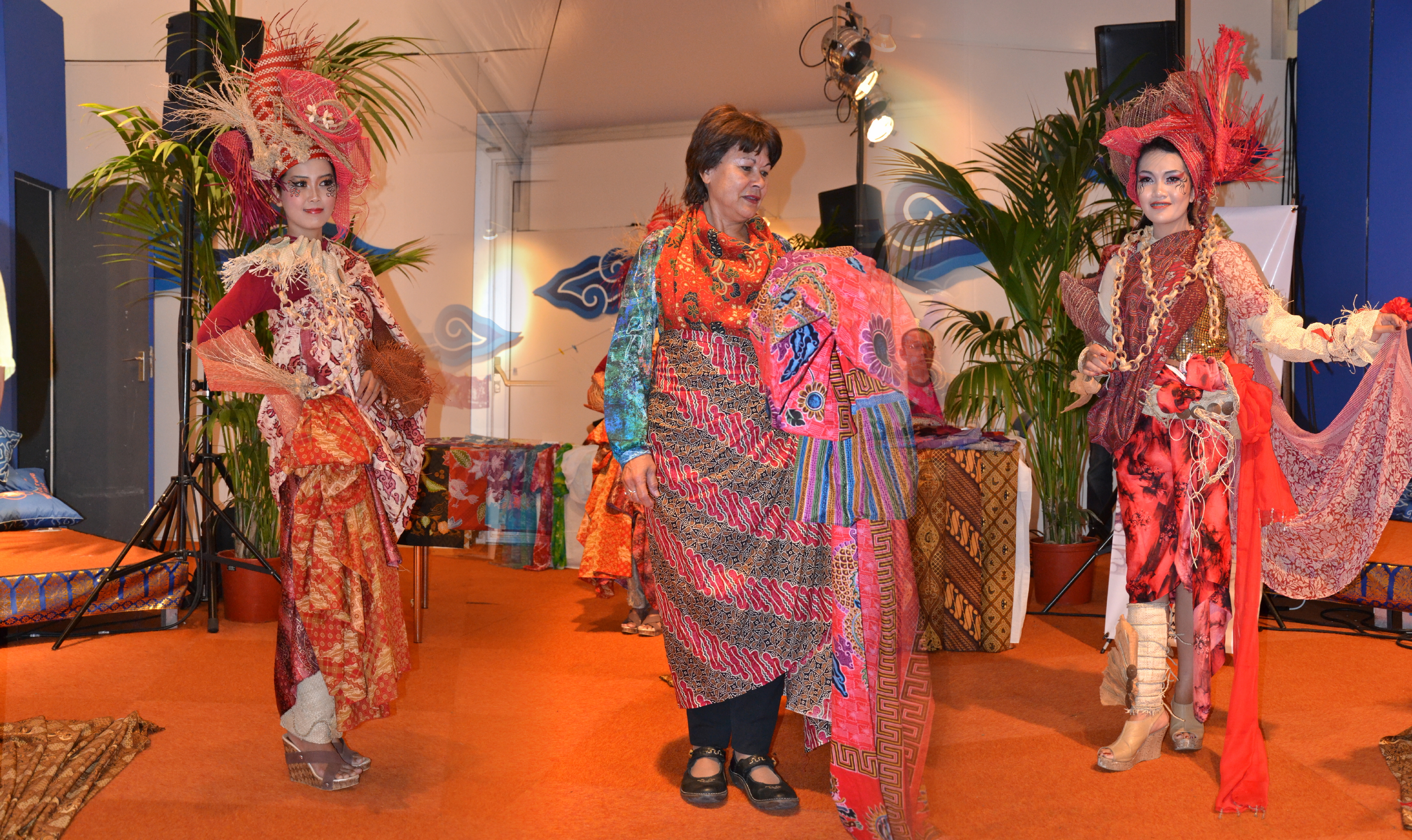 Ik vind het eigenlijk schandalig dat ze zo’n plompe vrouw uit het publiek gekozen hebben, met schoenen om de vierdaagse mee te lopen. Dat doet toch afbreuk aan de beeldige sarongs met motieven uit het Solo-se, de accessoires vervaardigd uit puur natuurlijke produkten en de prachtige Indonesische schonen die de kleding demonstreren…. Bah…