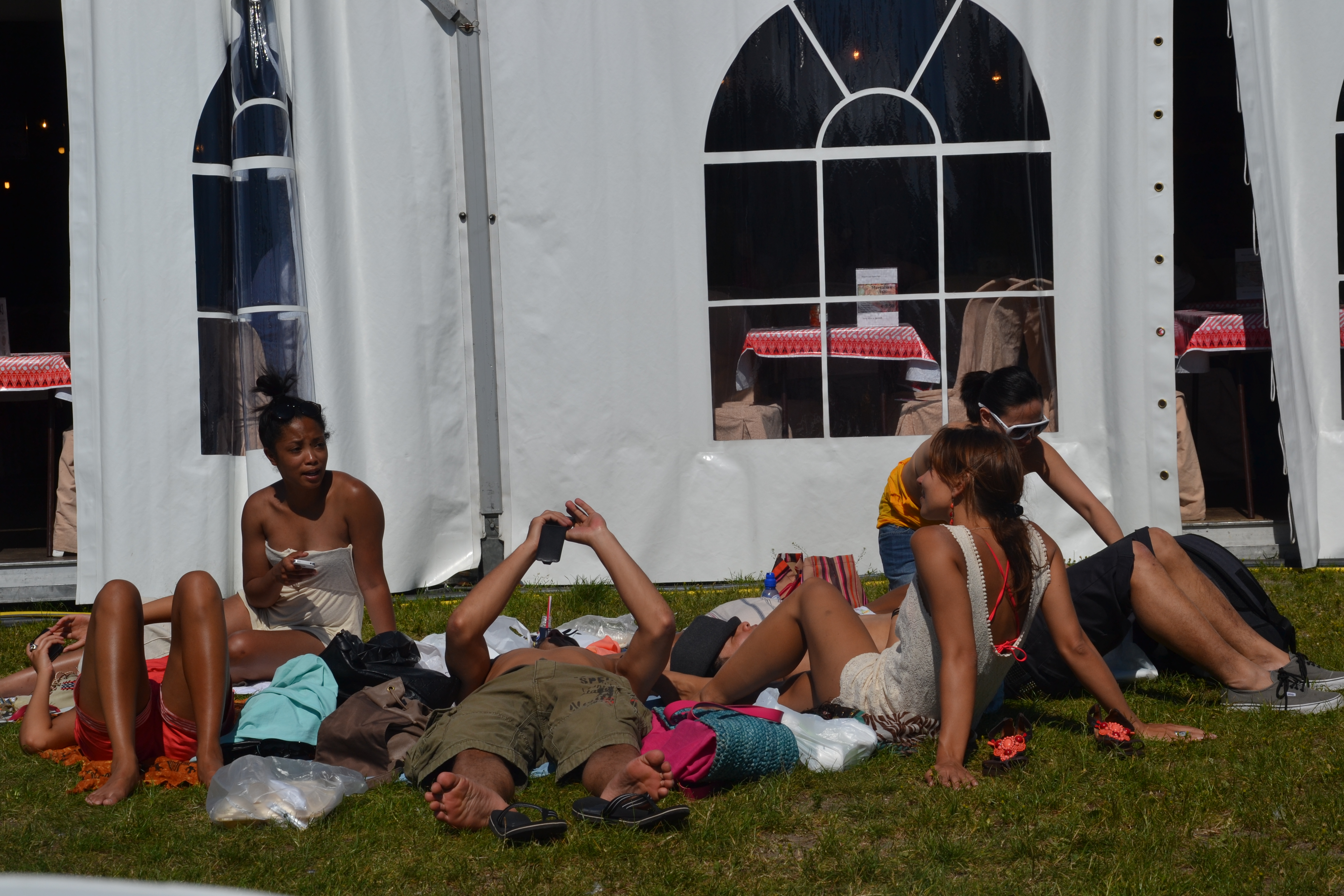 Vrijdag 25 mei — Lijkt wel of we op de camping zitten zeg. Wederom zomerse taferelen op het Malieveld. Gelukkig kan je overal even naar buiten glippen, in de zon of schaduw, lekker uitwaaien.