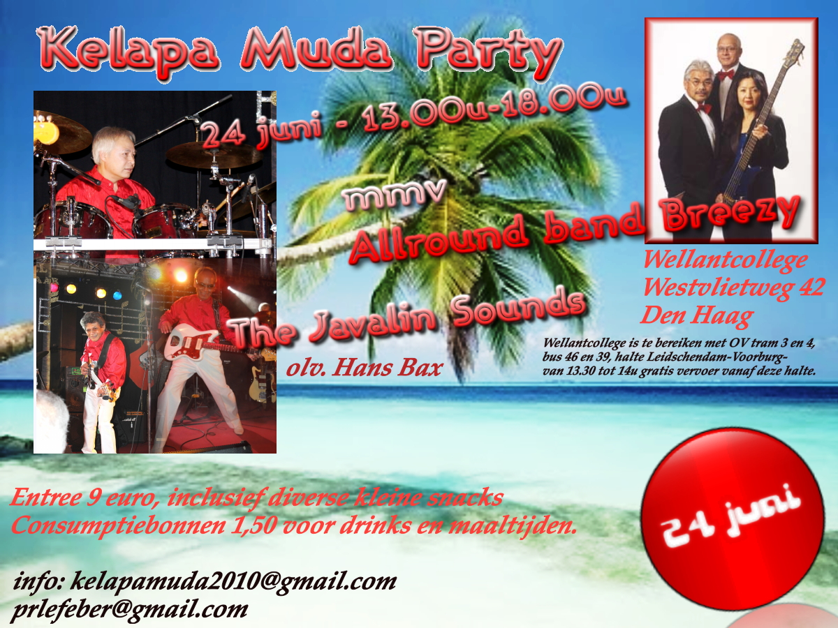 Op 24 juni weer een gezellige kumpulan in Den Haag, met optredens van Breezy en Javalin Sounds olv. Hans Bax. klik op de flyer