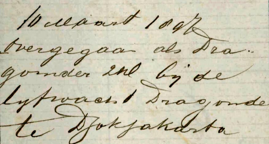 Volgens zijn suppletiefolio werd hij in 1897 dragonder te Djokjakarta