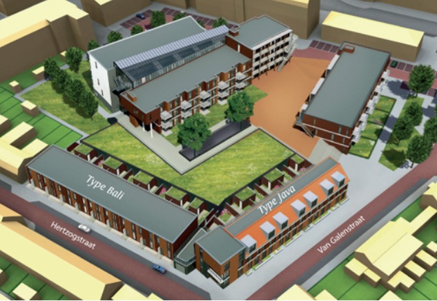 Het appartementencomplex Tjempaka (Van Galenstraat 165 Den Helder) op het voormalige terrein van de sociale dienst van de gemeente Den Helder wordt later deze week officieel geopend. Het complex is gereed en inmiddels grotendeels bewoond.