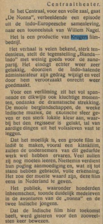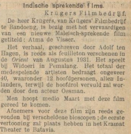 Daarna waagde George Krugers in 1932 zich aan een maleis-sprekende film met een premiére in Batavia. klik op het plaatje