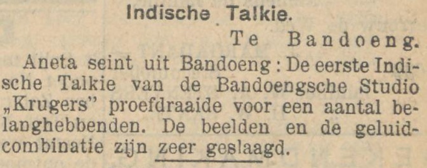 De eerste sprekende film in Bandoeng wordt aangekondigd. In 1931 was het dan zover.