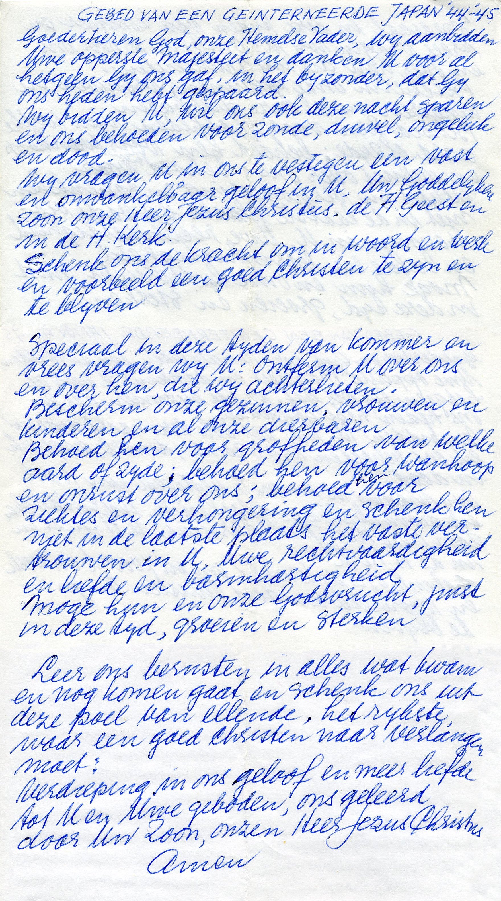 Behoed hen voor grofheden van welke aard of zijde; behoed hen voor ziektes en verhongering en schenk hen niet in de laatste plaats het vaste vertrouwen in U, Uwe rechtvaardigheid en liefde en barmhartigheid.