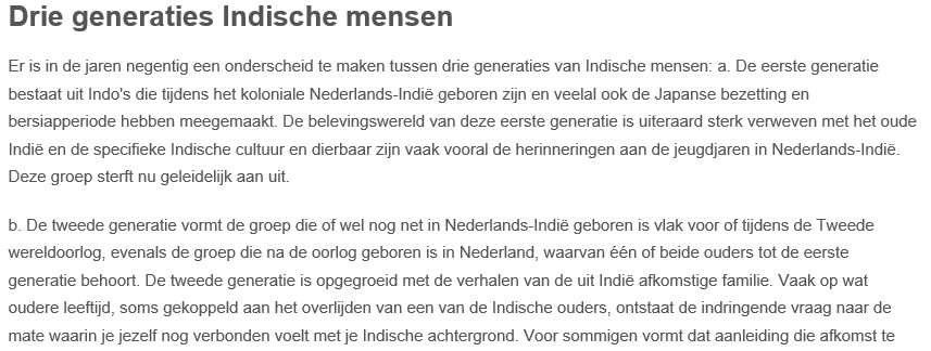Wanneer is iemand 1e generatie Indisch en wanneer dan 2e of 3e generatie? Over de juiste scheidslijnen zijn de meningen verdeeld. Zelf , ga ik uit van de simpele regel: