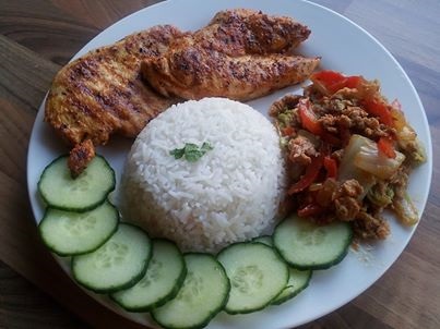 Bron: Lidl food….gegrilde kipfileetjes en een mix van chinese kool paprika en eieren…