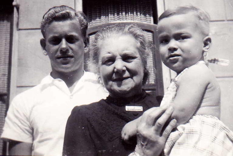 De baby op de arm van tante Paula, oudste kind van tante Dee (Hermine) en oom Paul (alias Frits), is mijn neef Peter, sinds 1959 Amerindo in California en diep gelovig Republikein.