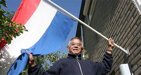 Al jaren hangt Henri Fredriksz uit Nieuw-Beijerland de vlag uit op 15 augustus. Halfstok, met een puntje van de vlag aan de mast gebonden.