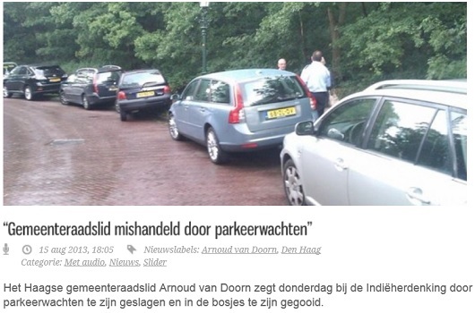 Je parkeert geen auto op het trottoir en parkeer wachter moet zijn handen thuis houden. Hij wordt daar toch niet voor betaald.