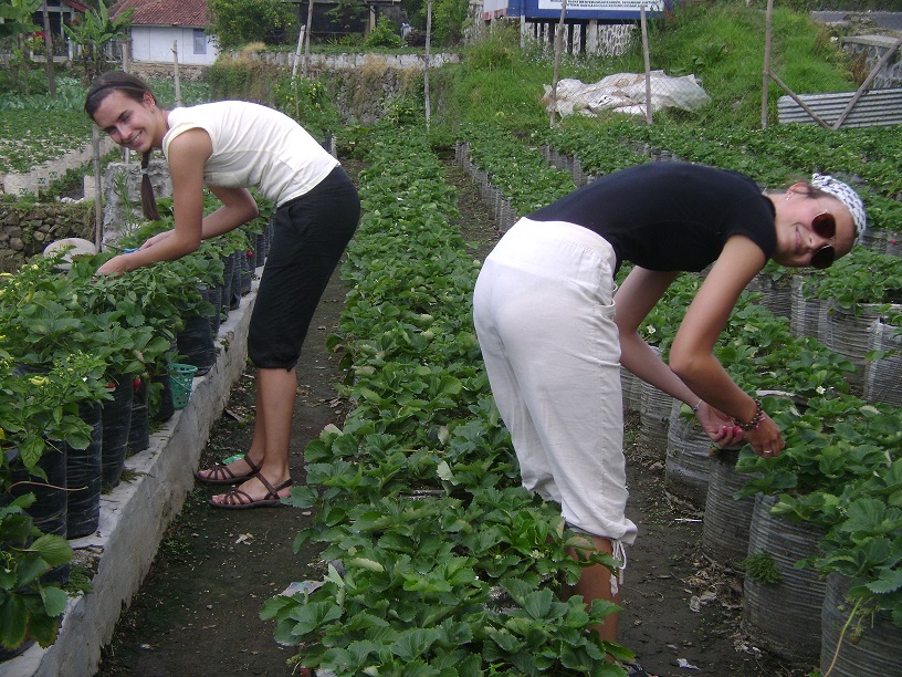 In Lembang heb je al jaren de strawberry farms waar je zelf kan plukken bij de stroberi boer/boerin.