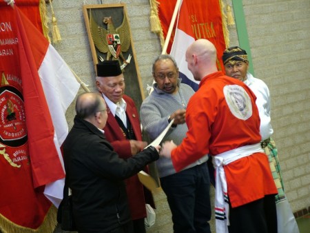 Vandaag was ik bij Paguron Mande Muda Mawar Suci in Den Bosch, bij mijn goede vriend de heer Tulalessy. Hij is ook guru in de pencak silat en hij hield examens voor de graduatie pelatih: dit is de zwarte band in de Indonesische verdedigingskunst.