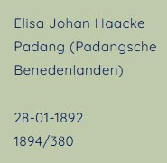 Het lijkt wel of Elisa (Jan) Johan Haacke is verdwenen uit de familiegeschiedenis op de één of andere manier, heel interessant.