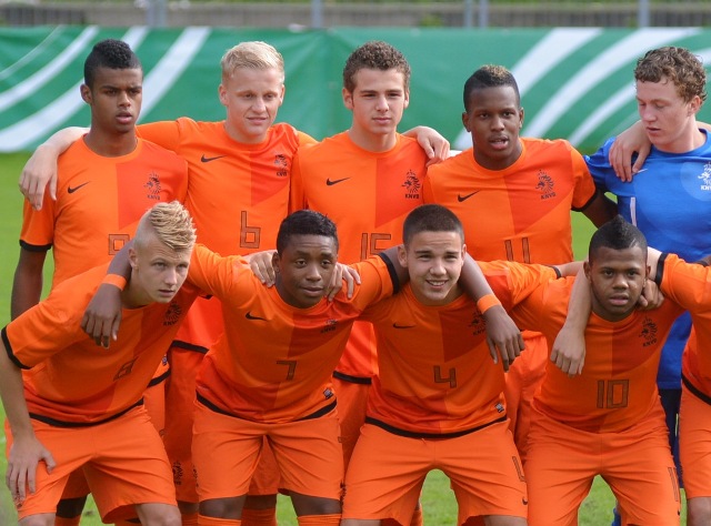 Het Nederlands voetbalelftal voor spelers onder 17 jaar gaat deze week naar het vriendschappelijke Algarve-toernooi in Portugal. Engeland, Duitsland en het gastland zijn de tegenstanders. Ezra Walian (Ajax) zit niet in de selectie van 22, maar staat toch op de standbylijst. Calvin Verdonk van Feyenoord en van Indische komaf, is wel in de selectie opgenomen. Hij is nr 4 op de foto.