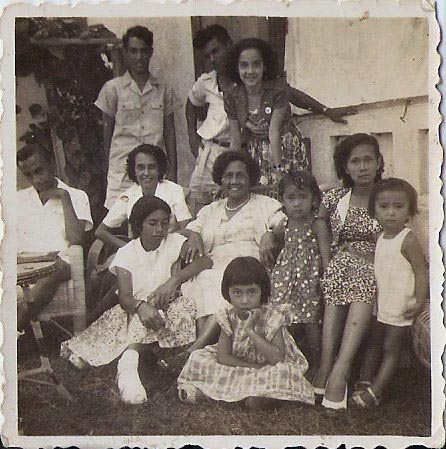 Ik kreeg opeens een ingeving en heb mijn familie in Indonesië om hulp gevraagd. Zij konden 4 personen op de foto identificeren. De vrouw rechts die tussen die twee meisjes staat is mijn tante Ernie van de Vijver. Zij trouwde met een Chinese man die Han heette (later nam hij de naam Handoko aan) en bleef met hem en haar kinderen in Indonesië wonen. De meisjes die aan weerszijden van haar staan zijn haar dochters Kimlan (links) en Mulan (rechts). Het meisje dat in kleermakerszit voor haar zit is haar oudste dochter Meity.