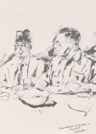 Het zijn litho’s, die journalist en beeldend kunstenaar Henk Ngantung maakte tijdens de Linggarjati-conferentie in 1946 in Joty’s ouderlijk huis. Piet Sanders was daar lid van de Nederlandse delegatie.