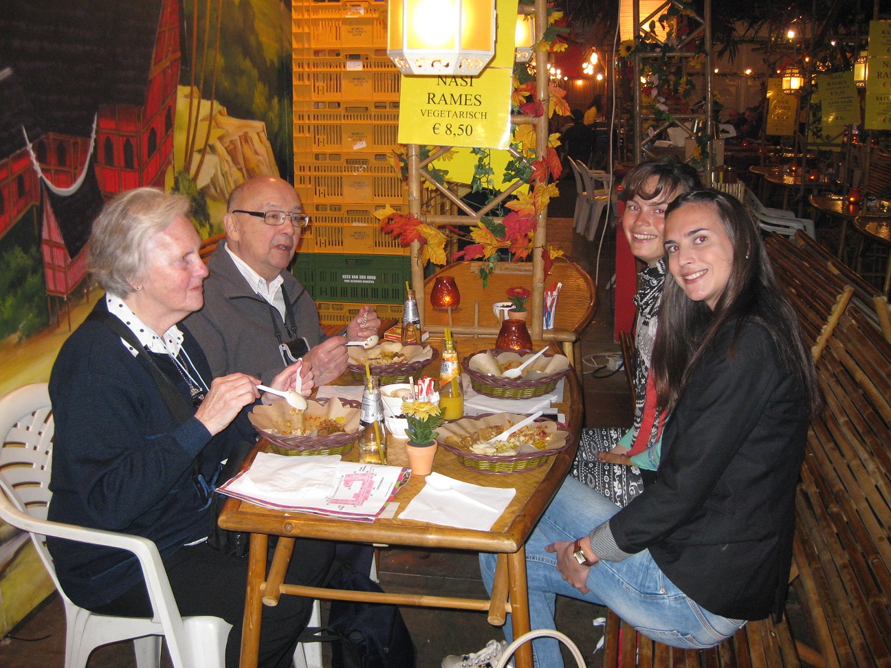 Jan Somers met zijn Zeeuws meisje en twee kleindochters aan de makan.