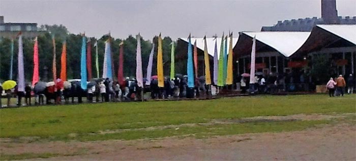 Met flinke pas snellen we door de regen langs de lange rij voor de kassa’s. Die lange rij is wel gestaag in beweging, maar wij zijn veel sneller binnen. Wij letten niet op jaloerse blikken, dit is onze dag.