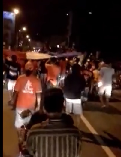 Voor wie dit filmpje op facebook kan openen . Jongeren in oranjekleding lopen en brommeren achter een hele lange merah-putih-biru-vlag gedragen door tientallen jongeren.