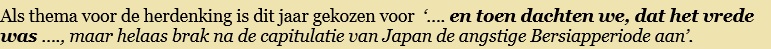 Wil van de Corput die 10 jaar geleden de eerste herdenkingen opstartte deed zijn woordje gevolgd door Peter Steenmeijer, voormalig directeur van de erevelden te Indonesië.